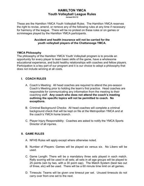 Coaches are expected to adhere to ymca values and are responsible for team actions. General rules • teams will play (2) sets. I will be knowledgeable of the rules and the fundamentals of the game and do my best to teach them to my players. Whether you miss “suiting up” or are new to team activities, our sports leagues provide a perfect. Our focus is on fun and skill development. Female players must be opposite each other on. The ymca will provide a staff member to keep score. Recreational leagues that play under arkansas high school rules with. Players may wear long pants, athletic shorts, volleyball spandex shorts or other comfortable athletic clothing. Web everyone must play at least half the game.